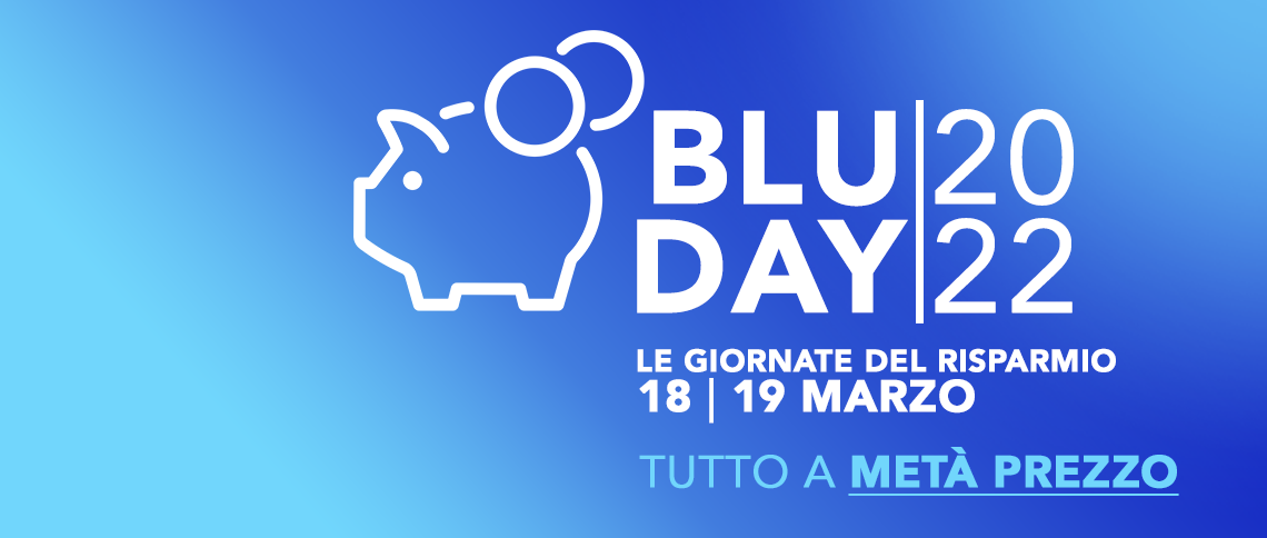 Lo sconto BluDay sarà automaticamente applicato ad ogni tuo ordine ordine, su tutti i prodotti per i quali è previsto.