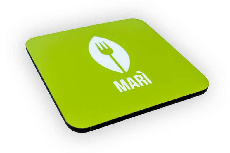 Il tuo logo o la tua immagine stampati direttamente, e in alta qualità, su sottobicchieri in sughero morbido o MDF rigido.